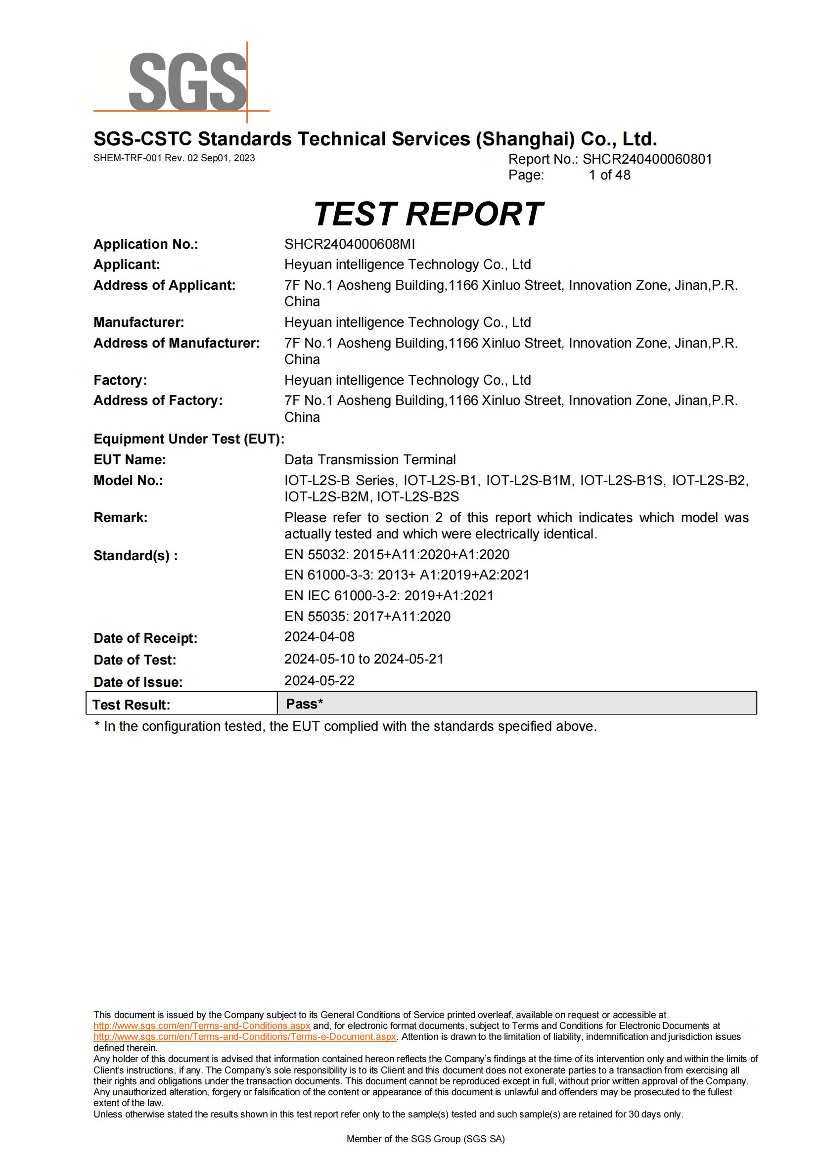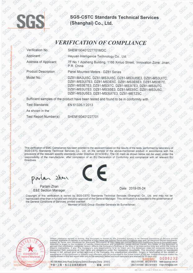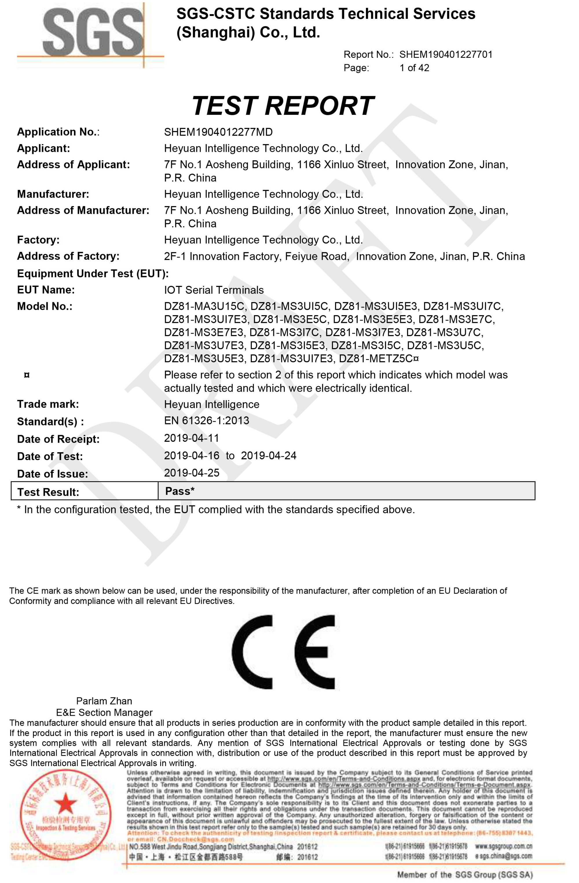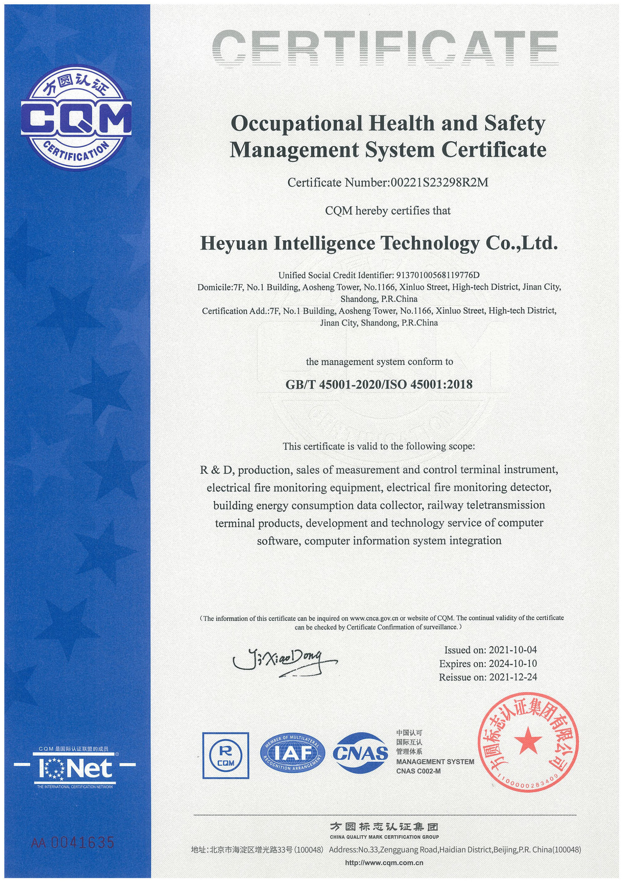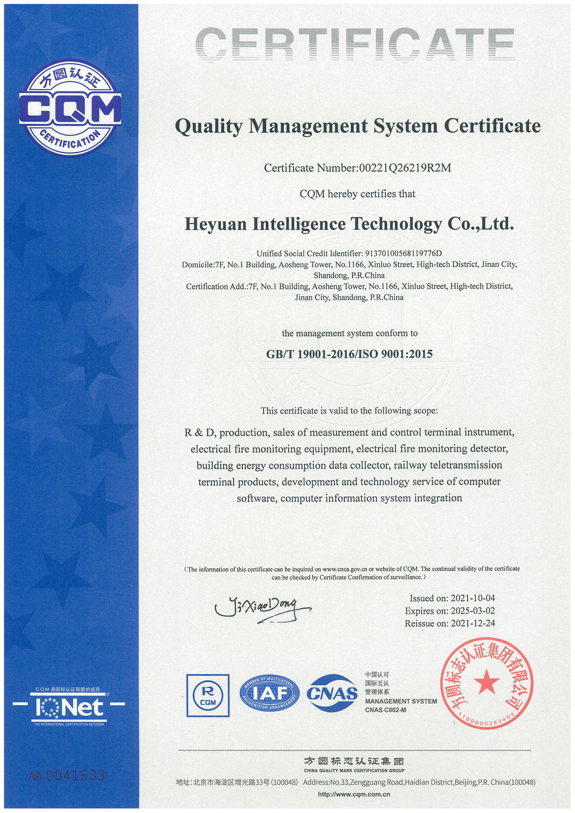Successfully developed a new generation of IoT intelligent measurement and control terminal HYFW, and passed the CPA (0.5S) certification and CCC certification