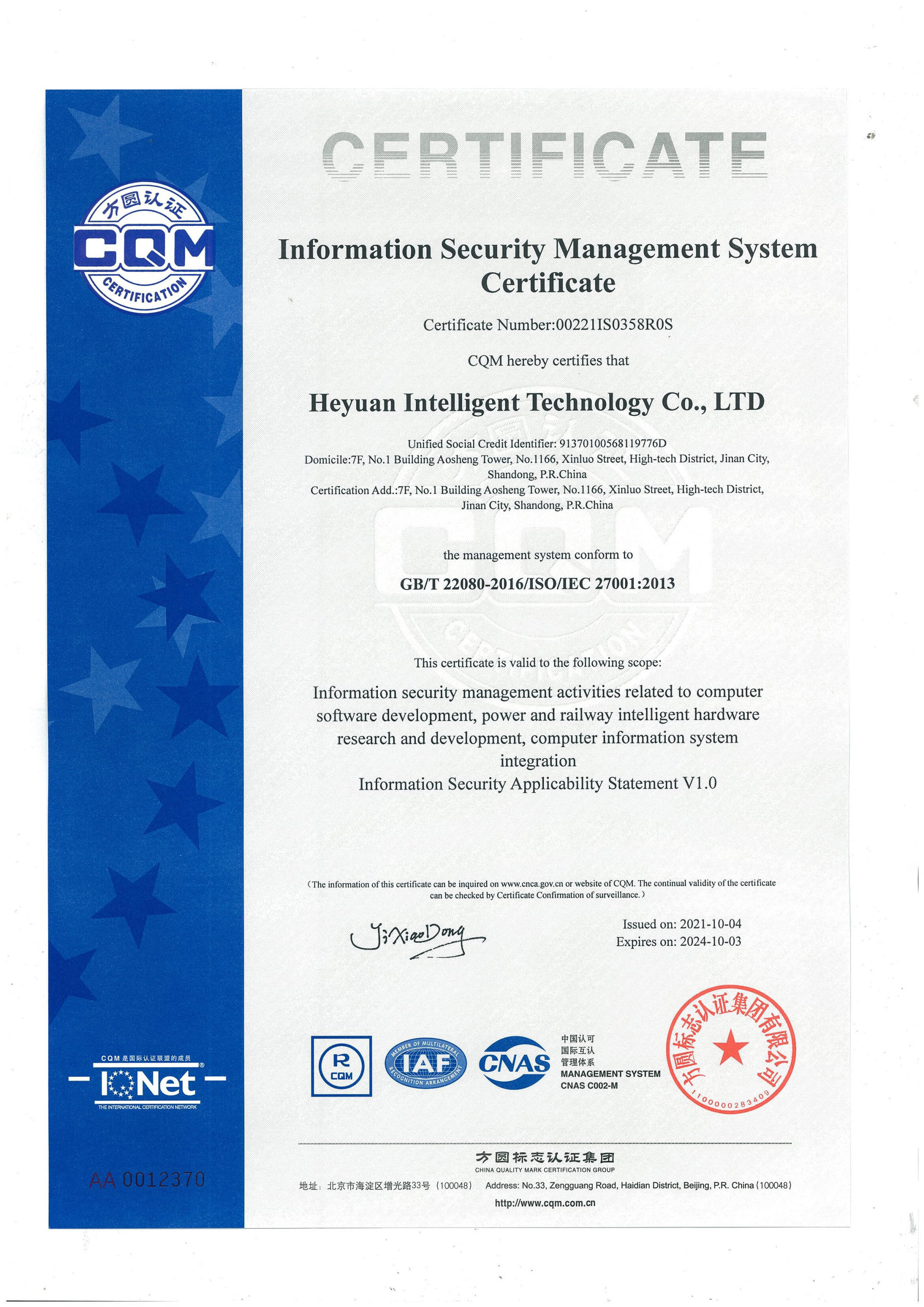 Obtained the Information System Construction and Service Capability Level Certificate (CS2) in 2024, Shandong Province's first edition of high-end software (integrated management platform software [abbreviated as: integrated management platform] V1.0), Jinan City's key industrial new product (centralized RTU), Shandong Province's three-excellence and two-weight project